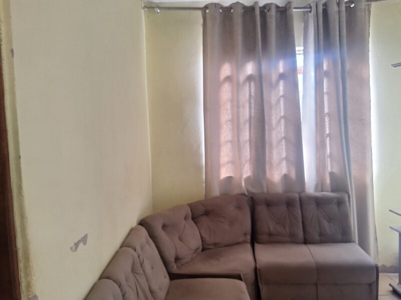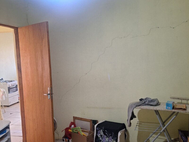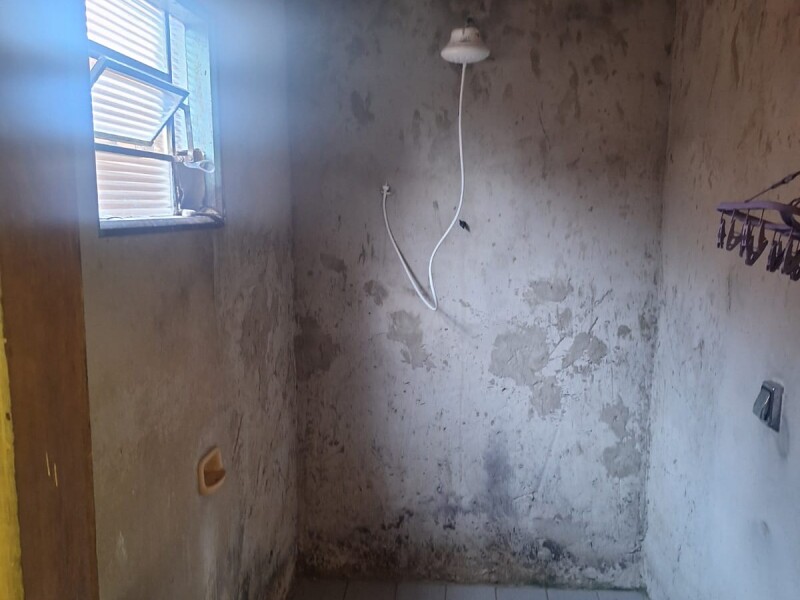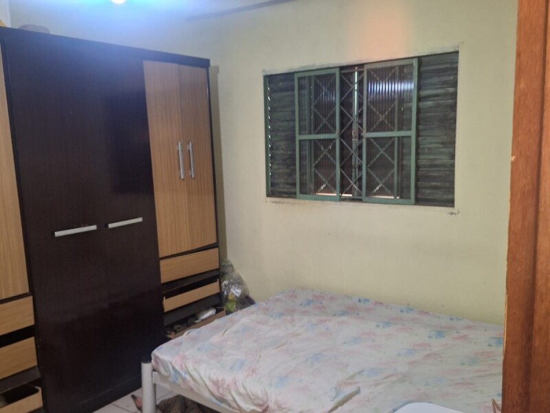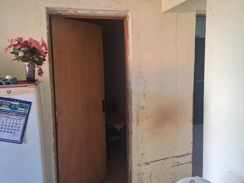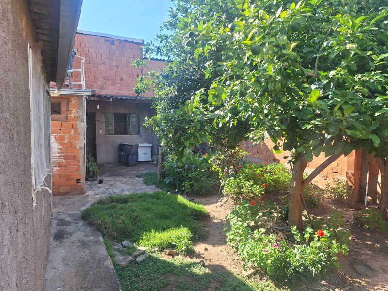 Casa com dois dormitórios, sala, cozinha, banheiro, área de serviço e garagem para dois carros.